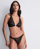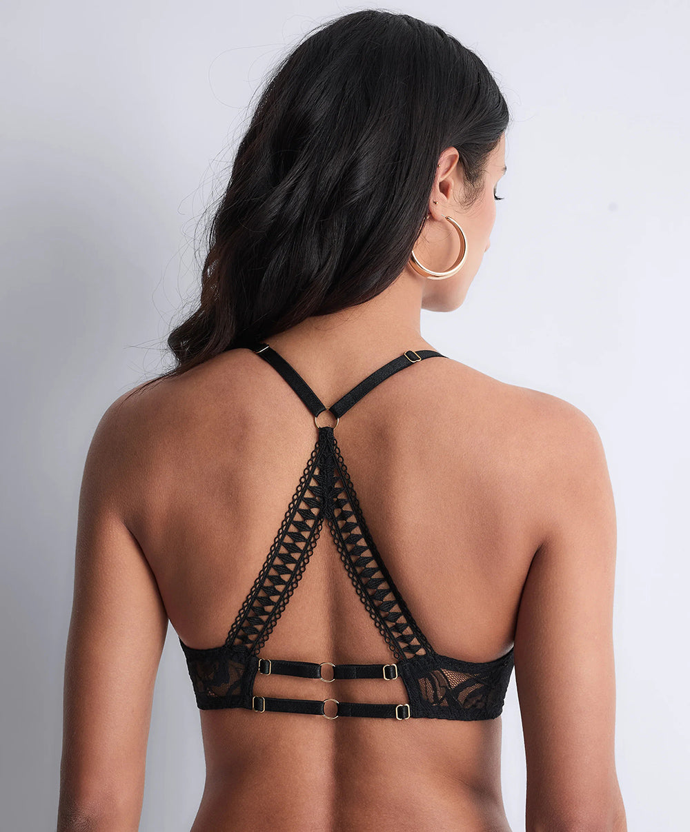 Dévoilant un décolleté vertigineux, le soutien-gorge triangle ultra plunge After Hours d’Aubade sublime le buste grâce à une dentelle florale délicate et envoûtante. Sa matière légère et raffinée habille le haut du buste avec élégance, tandis que son attache avant originale apporte une touche contemporaine et audacieuse. Le dos, structuré par une guipure graphique ajourée et des liens inspirés du bondage chic, révèle subtilement la peau et accentue la sensualité de cette pièce de lingerie française haut de gamme. Les bretelles ornées de guipure et les bijoux signature de la ligne complètent ce modèle sophistiqué. Parfait pour celles qui recherchent un soutien-gorge triangle en dentelle sexy, combinant modernité, confort et élégance à la française.