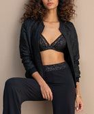 Veste à zipper collection Sensualité Fauve noir de chez Antigel par Lise Charmel.