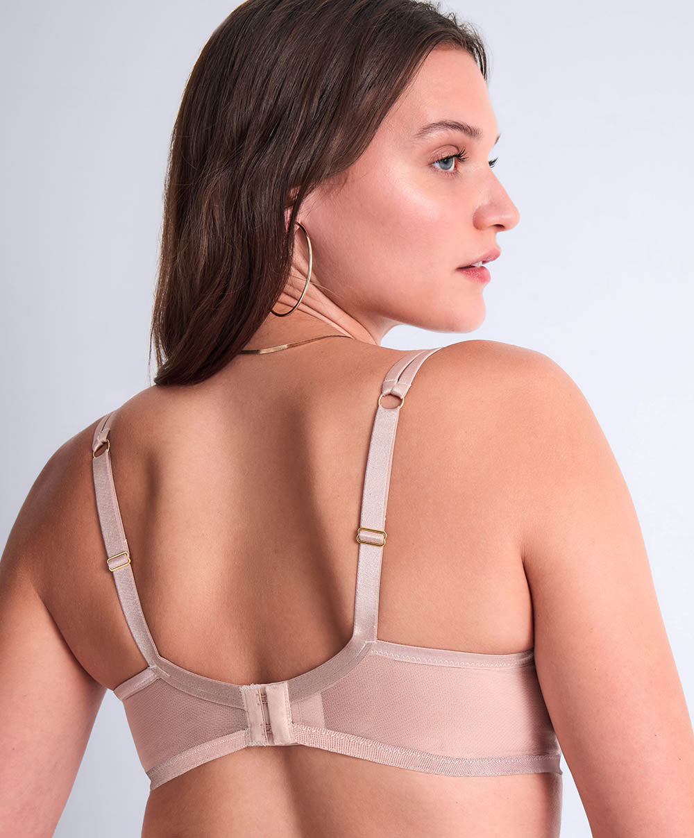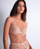 Soutien-gorge corbeille iconique de la collection lingerie Cosmic Romance Sand rose par Aubade Paris.