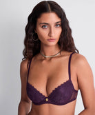Sa dentelle Leavers, à la fois fine et graphique, se marie à un plumetis aérien pour épouser vos courbes avec sensualité et légèreté. Ce jeu subtil de matière révèle une silhouette tout en douceur, tandis que de précieux détails viennent parfaire chaque pièce : un bijou feuillage au fini martelé, des gouttes dorées et des anneaux délicats, autant de touches raffinées qui illuminent les parures.
