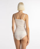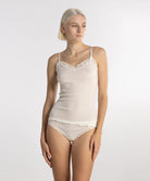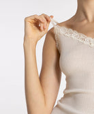 Débardeur laine et soie avec dentelle Leavers bretelles fines champagne collection Basic femme Wool & Silk de chez Oscalito.