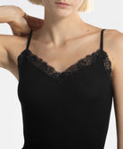Débardeur laine et soie avec dentelle Leavers bretelles fines