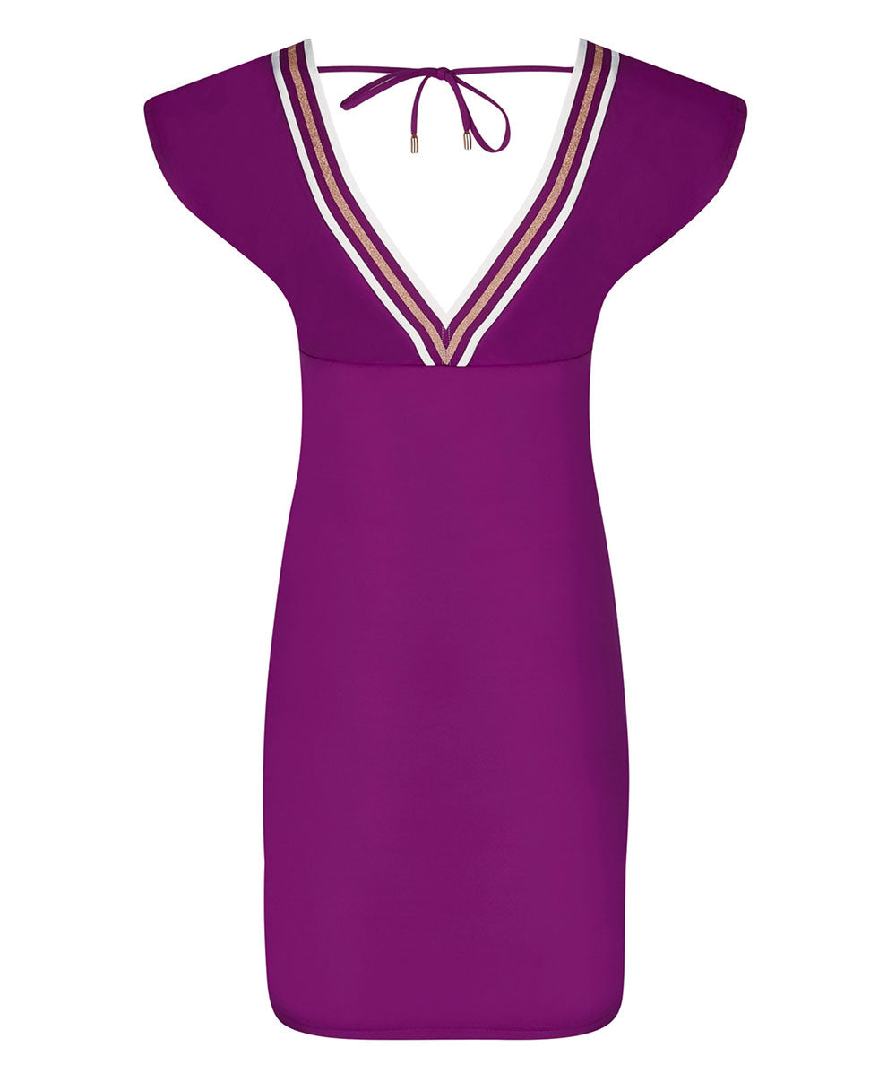 -As a finishing touch, you will find at the waist a superb elastic band under the chest with tricolor stripes (white, gold, blackcurrant) for a look that is both chic and sporty, very trendy.