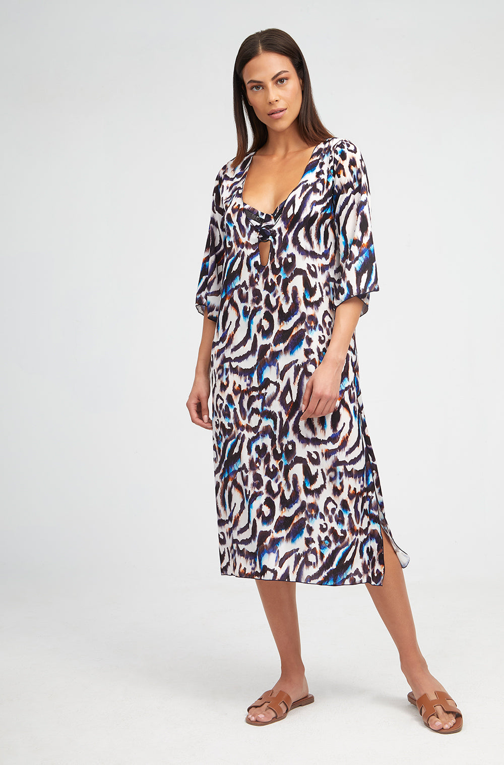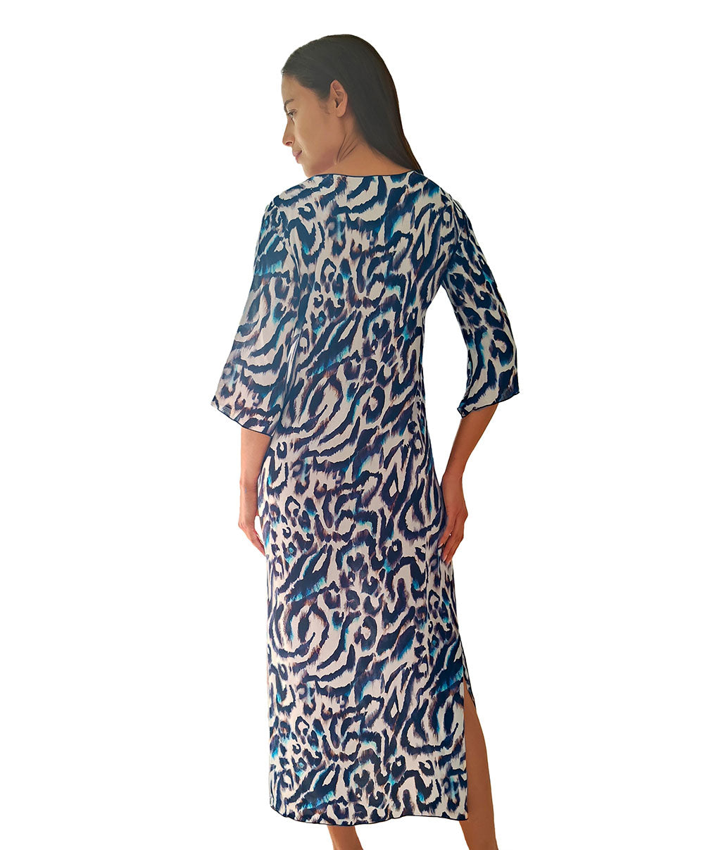 -Resistant beachwear with damask print and baroque patterns in predominantly black/green, cream and taupe, inspired by batik, for a look that is feminine, original and vintage chic on trend.