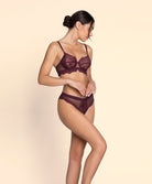 La collection de lingerie raffinée pour l'automne Élégance Artist par Lise Charmel : Découvrez Élégance Artist, la nouvelle collection de lingerie haut de gamme signée Lise Charmel, qui allie élégance moderne et raffinement artistique. Les teintes douces se déclinent en subtils dégradés de Cassis et de Prune, pour une allure féminine et sophistiquée. Sur un tulle transparent, une broderie délicate et une soutache fine dessinent avec grâce le mouvement fluide des feuilles. Les coupes élégantes, les décolletés travaillés et les basques festonnées subliment la silhouette. La lingerie en soie stretch offre un confort exceptionnel et un toucher doux, idéal pour la saison automnale.