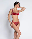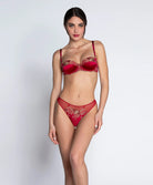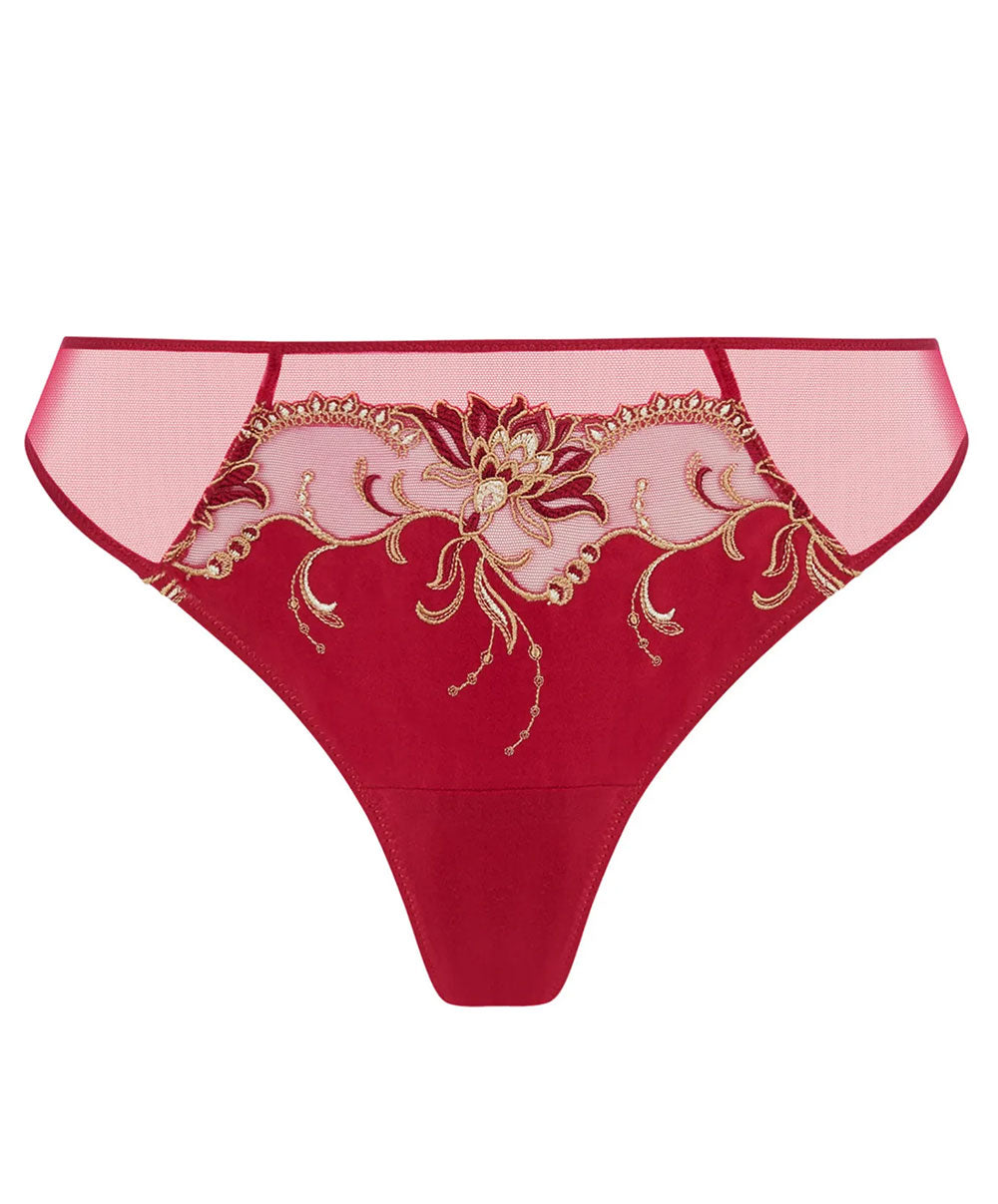 Tanga en soie Lise Charmel collection Éblouissante Icone, coloris or rubis.