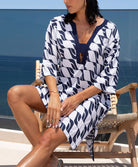 Tunique de plage collection Danse des Vagues de chez Lise Charmel bain, coloris danse blue.