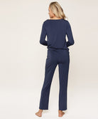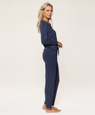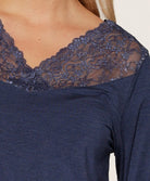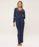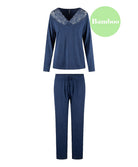 Ensemble pyjama dark denim bambou col en dentelle