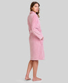 Ce modèle 100% polyester garantit non seulement une grande douceur au toucher, mais aussi une parfaite isolation thermique sans alourdir la pièce. La couleur rose pâle subtilement rayée illumine l’hiver et apporte une note féminine intemporelle à votre homewear. Facile à entretenir, cette robe de chambre conserve douceur et éclat lavage après lavage.