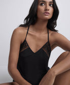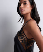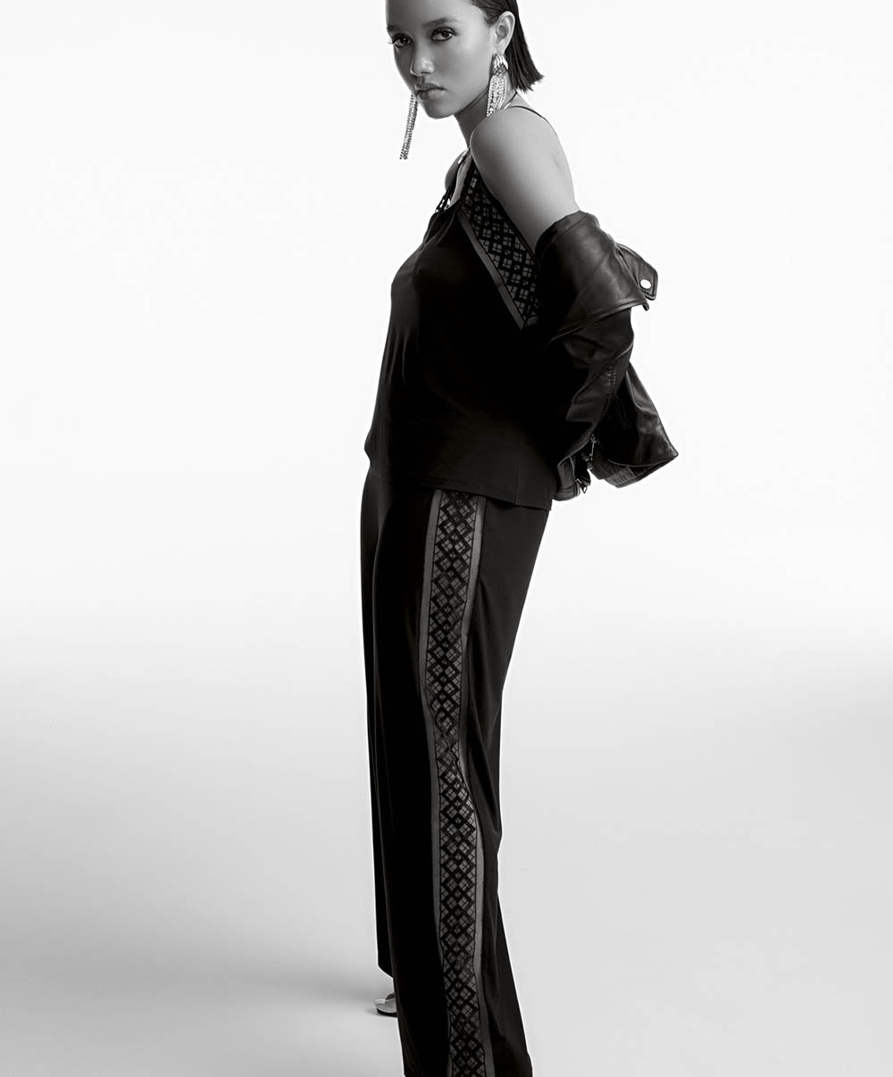 La maille en modal, douce et cosy, épouse le corps pour une sensation de bien-être à chaque instant. Les empiècements brodés graphiques révèlent subtilement les jambes et le décolleté, offrant une touche chic et audacieuse à chaque pièce.