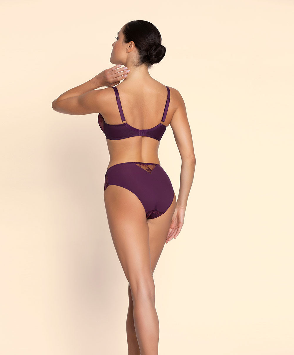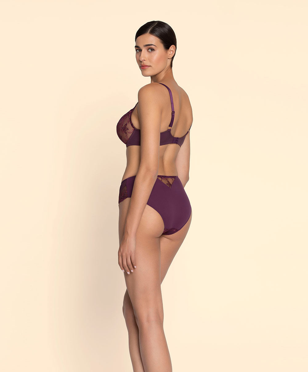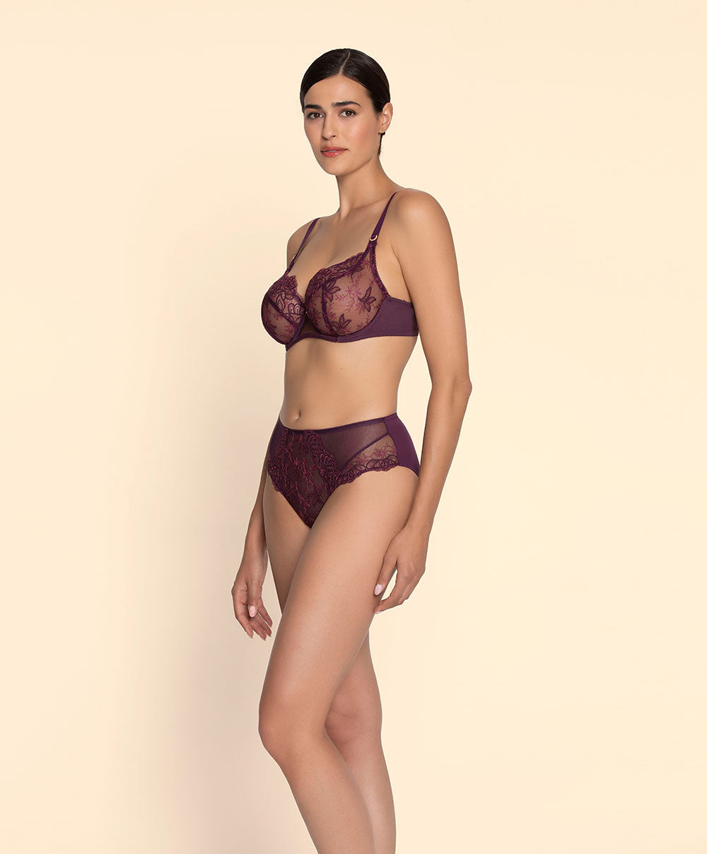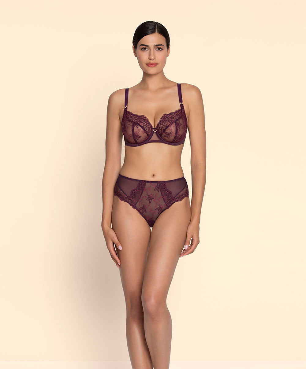 La collection de lingerie raffinée pour l'automne Élégance Artist par Lise Charmel : Découvrez Élégance Artist, la nouvelle collection de lingerie haut de gamme signée Lise Charmel, qui allie élégance moderne et raffinement artistique. Les teintes douces se déclinent en subtils dégradés de Cassis et de Prune, pour une allure féminine et sophistiquée. Sur un tulle transparent, une broderie délicate et une soutache fine dessinent avec grâce le mouvement fluide des feuilles. Les coupes élégantes, les décolletés travaillés et les basques festonnées subliment la silhouette. La lingerie en soie stretch offre un confort exceptionnel et un toucher doux, idéal pour la saison automnale.