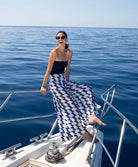 -Textile fluide aux motifs à l'élégance très haute couture mettant en lumière des vaguelettes blanches et bleues marine style art déco pour une allure ultra-féminine esprit yachting.