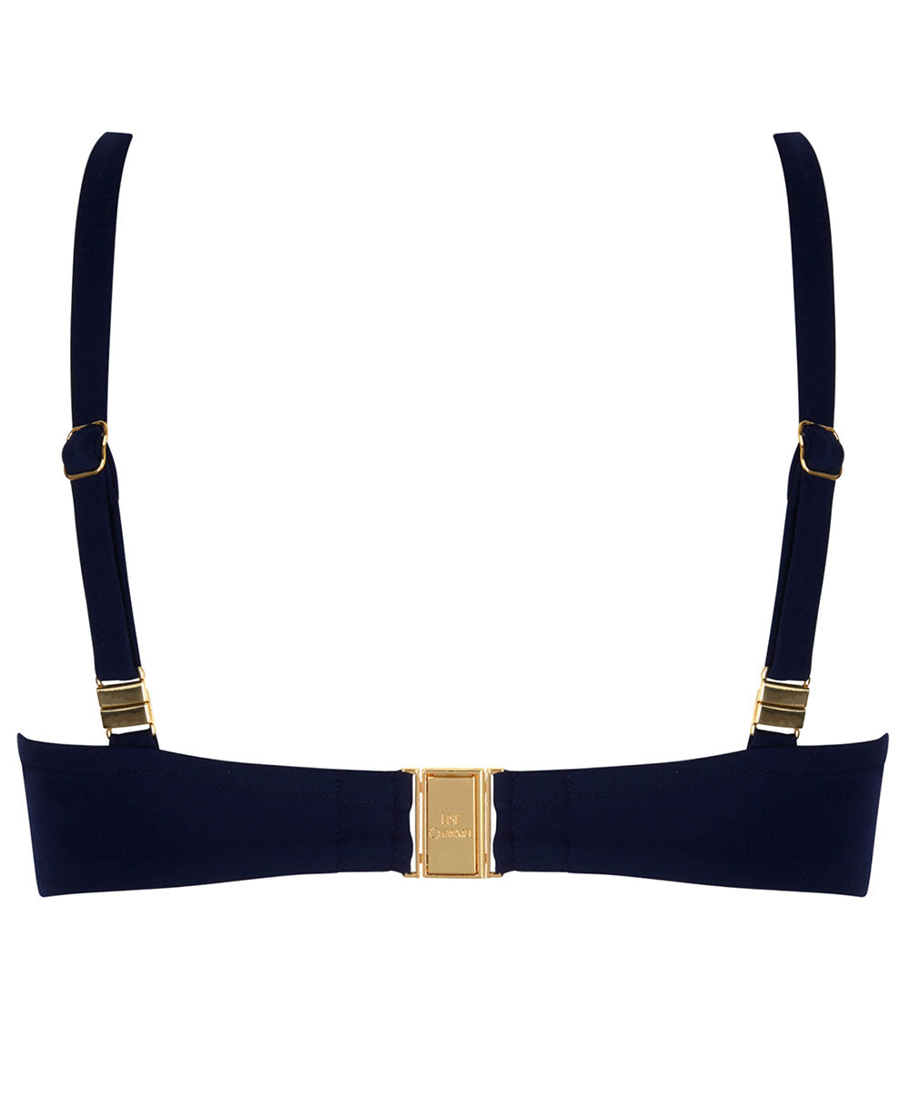 -Le raffinement se niche dans chaque détail : le départ des nouettes est sublimé par un bijou aux anneaux d'un blanc pur, rehaussé de délicates touches dorées. Pour plus de sophistication, ce haut de maillot Lise Charmel propose une bouclerie dorée.