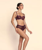 La collection de lingerie raffinée pour l'automne Élégance Artist par Lise Charmel : Découvrez Élégance Artist, la nouvelle collection de lingerie haut de gamme signée Lise Charmel, qui allie élégance moderne et raffinement artistique. Les teintes douces se déclinent en subtils dégradés de Cassis et de Prune, pour une allure féminine et sophistiquée. Sur un tulle transparent, une broderie délicate et une soutache fine dessinent avec grâce le mouvement fluide des feuilles. Les coupes élégantes, les décolletés travaillés et les basques festonnées subliment la silhouette. La lingerie en soie stretch offre un confort exceptionnel et un toucher doux, idéal pour la saison automnale.