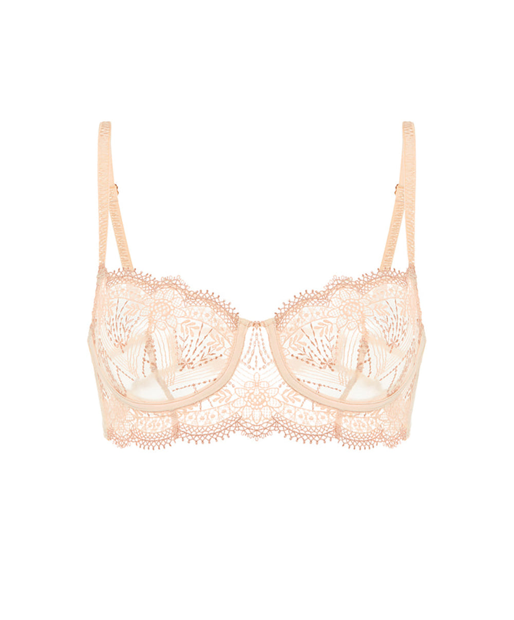 -Ce soutien-gorge à armatures effet mini-bustier offre des bonnets corbeilles confectionnés tout en ajourage pour un look glamour à souhait. Les bonnets mettent en exergue un tulle ajouré brodé de fleurs et de motifs baroques pour jouer le côté aérien et la séduction grâce à des jeux de transparence subtils. Ce soutien-gorge sexy est également doté de coutures verticales ayant pour effet de "projeter" visuellement la poitrine vers le haut pour encore plus jouer la carte de la séduction.