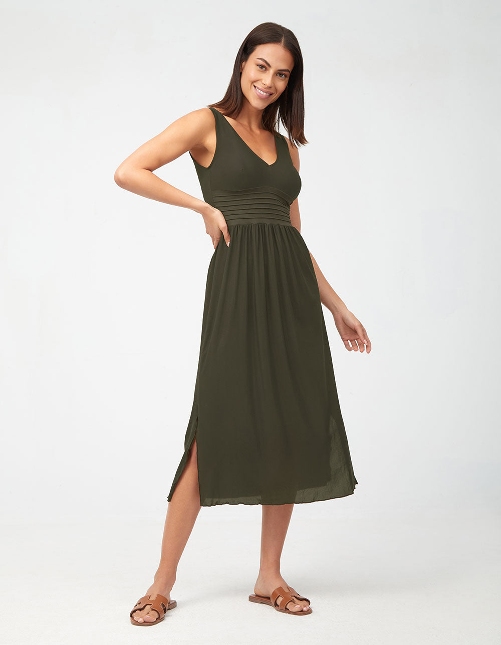 Olivia khaki long beach dress