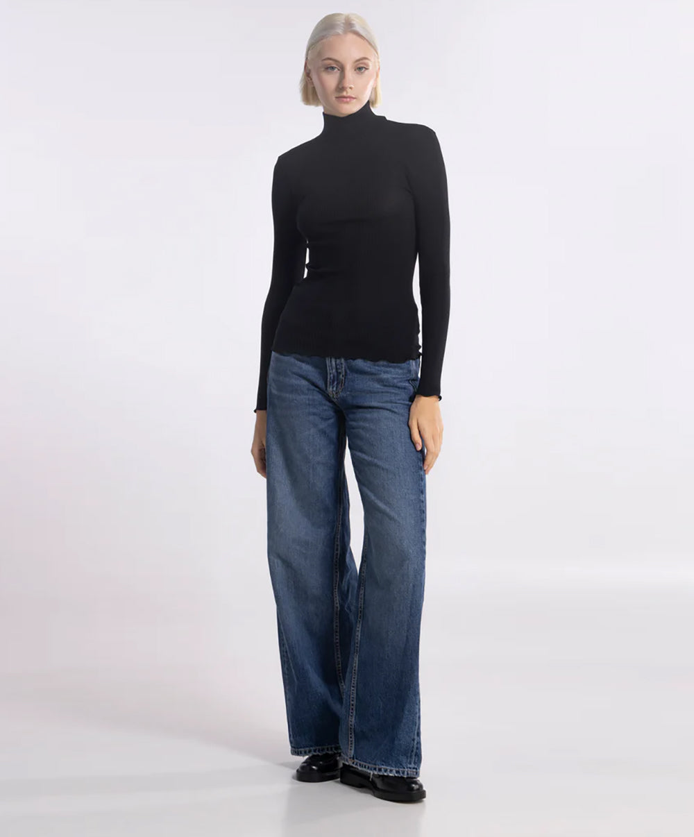 Pull manches longues laine et soie col montant