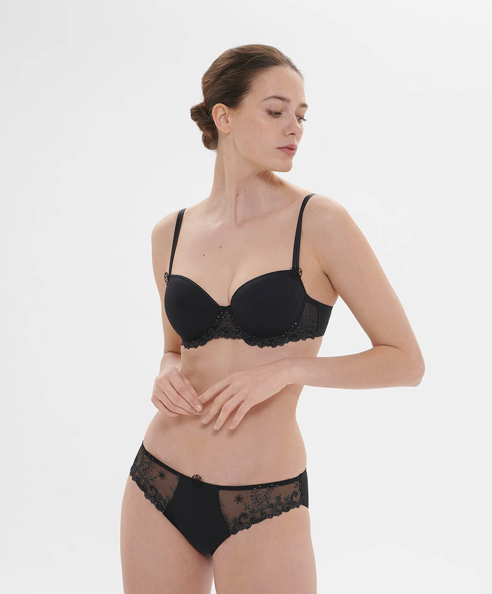 -We love the care taken with the finishes, with the guipure patterns at the hollow of the back and the raised embroidery, which elegantly highlights the contours of this very feminine underwear.