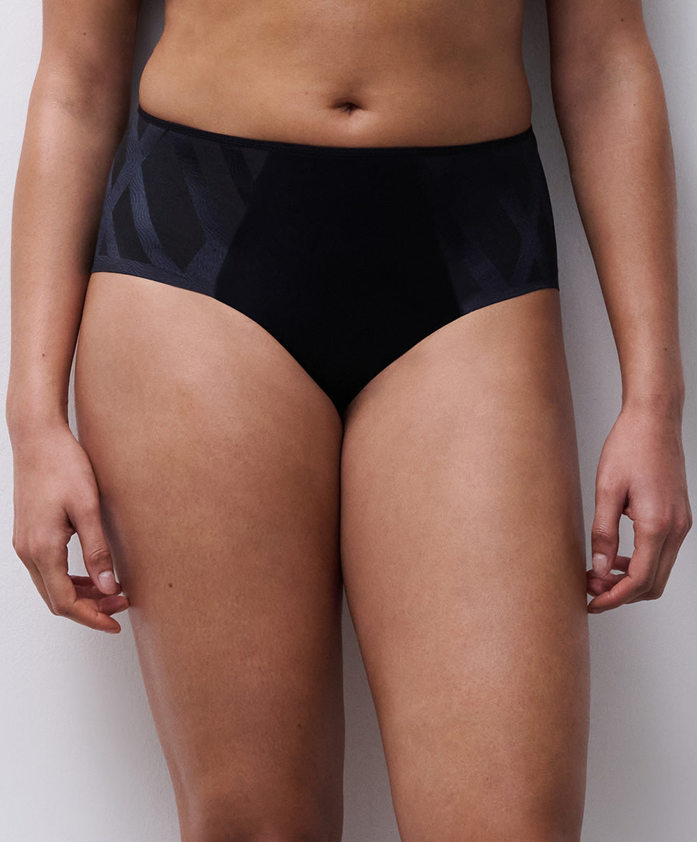 Culotte taille haute collection Glaze coloris noir de chez Chantelle.