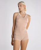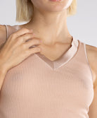 Débardeur laine et soie col V bordure satin