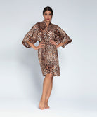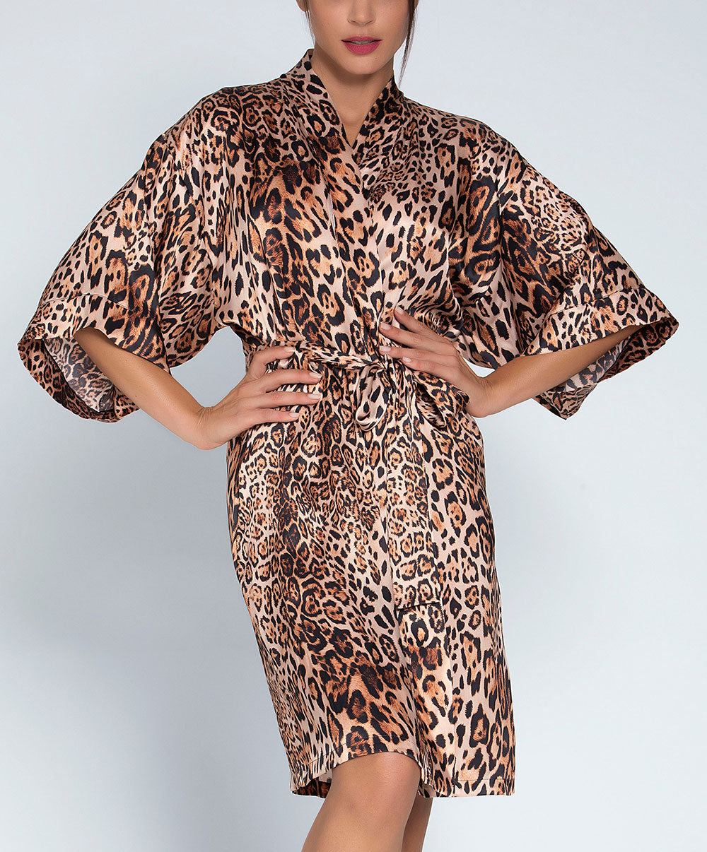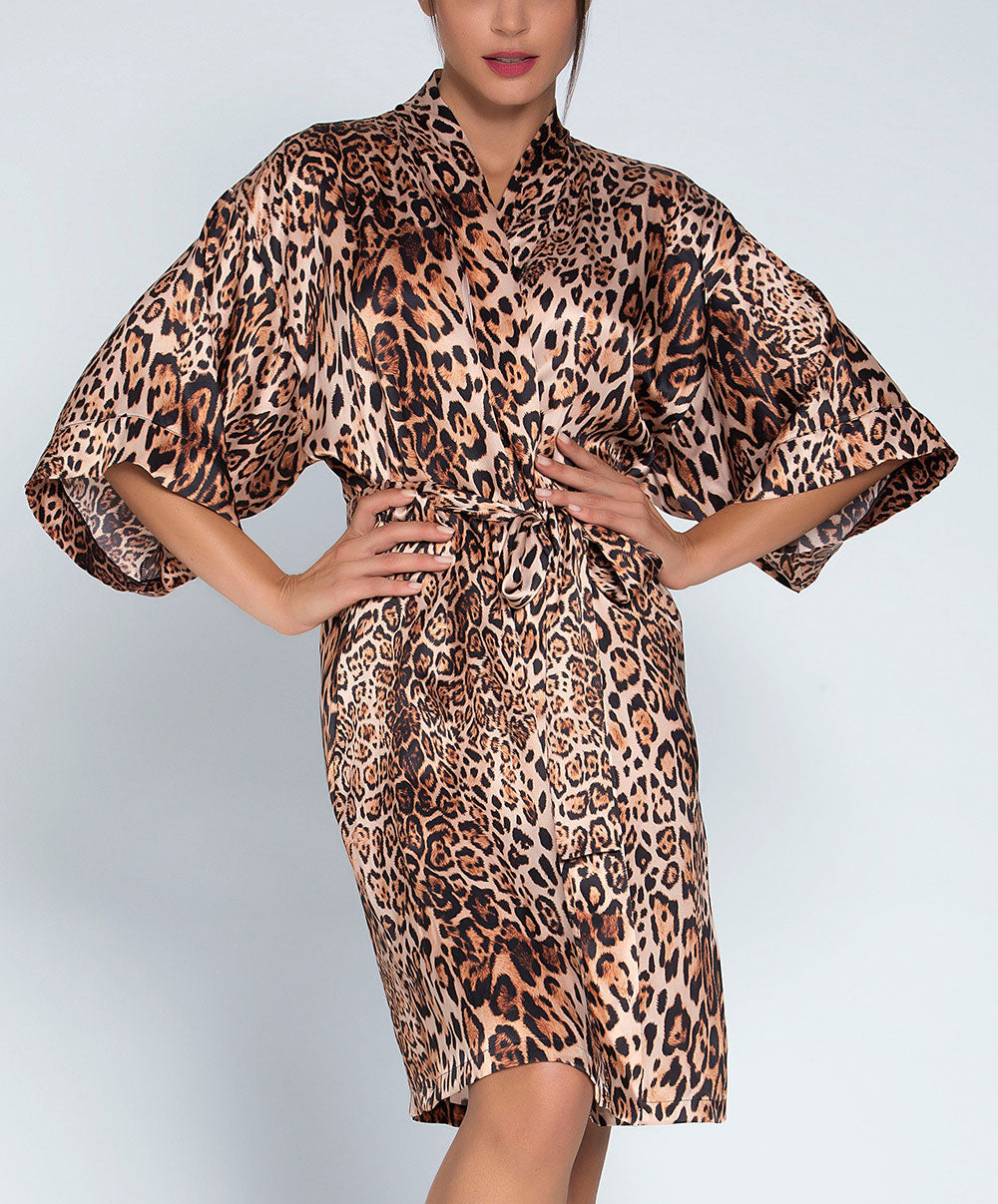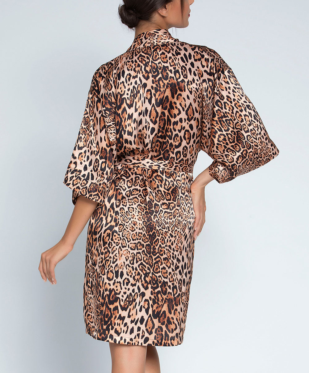 Déshabillé en soie collection lingerie de luxe Fauve Amour coloris Ambre Panthère de chez Lise Charmel.