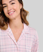 Chemise de nuit d'hiver rose à manches longues et motif à carreaux