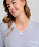 Col en V orné d’une délicate dentelle pour une touche féminine