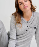 Pyjama hiver femme en tissu éponge côtelé, gris uni