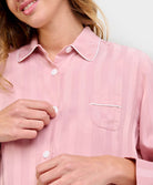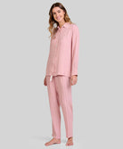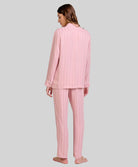 Pyjama long ouvert pour femme avec boutons rayés roses