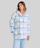 Robe de chambre courte à carreaux bleu clair pour femme