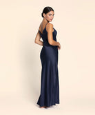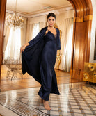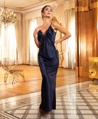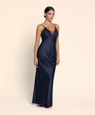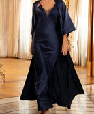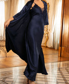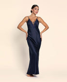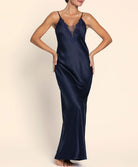 Nuisette longue en soie Lise Charmel collection de lingerie raffinée Éclat Couture, coloris bleu night.