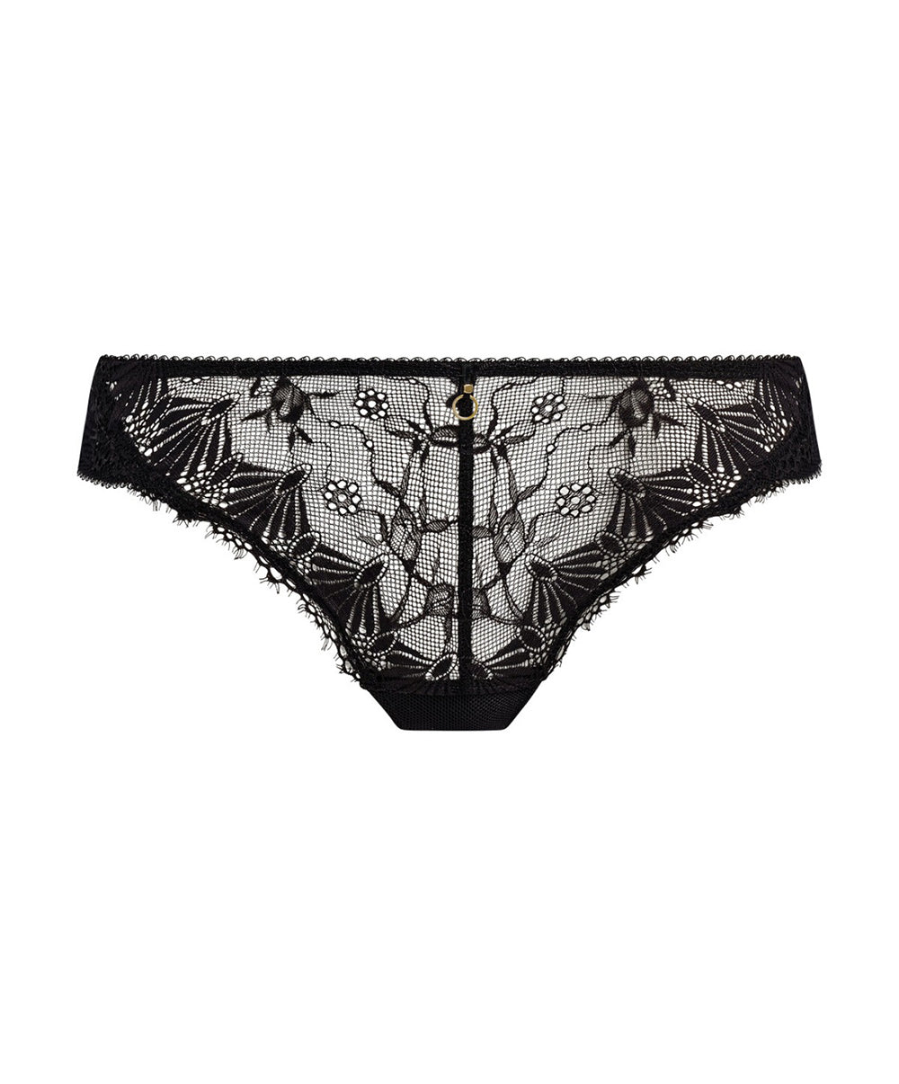 -Dessous chic et sexy aux transparences sensuelles mariant une dentelle frangée riche de motifs floraux et Art Nouveau, et détails décoratifs en résille pour une allure moderne et ultra-fémine.