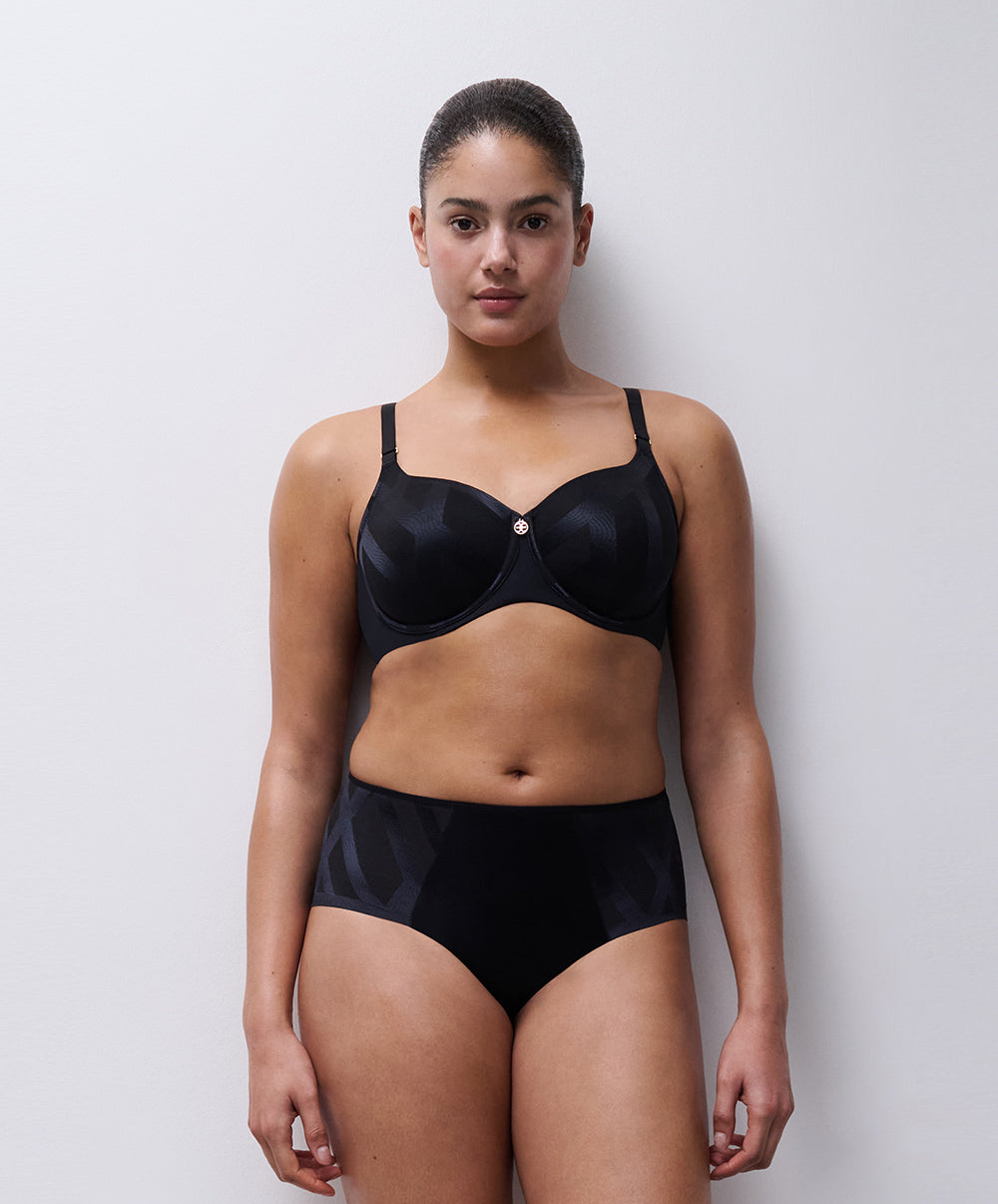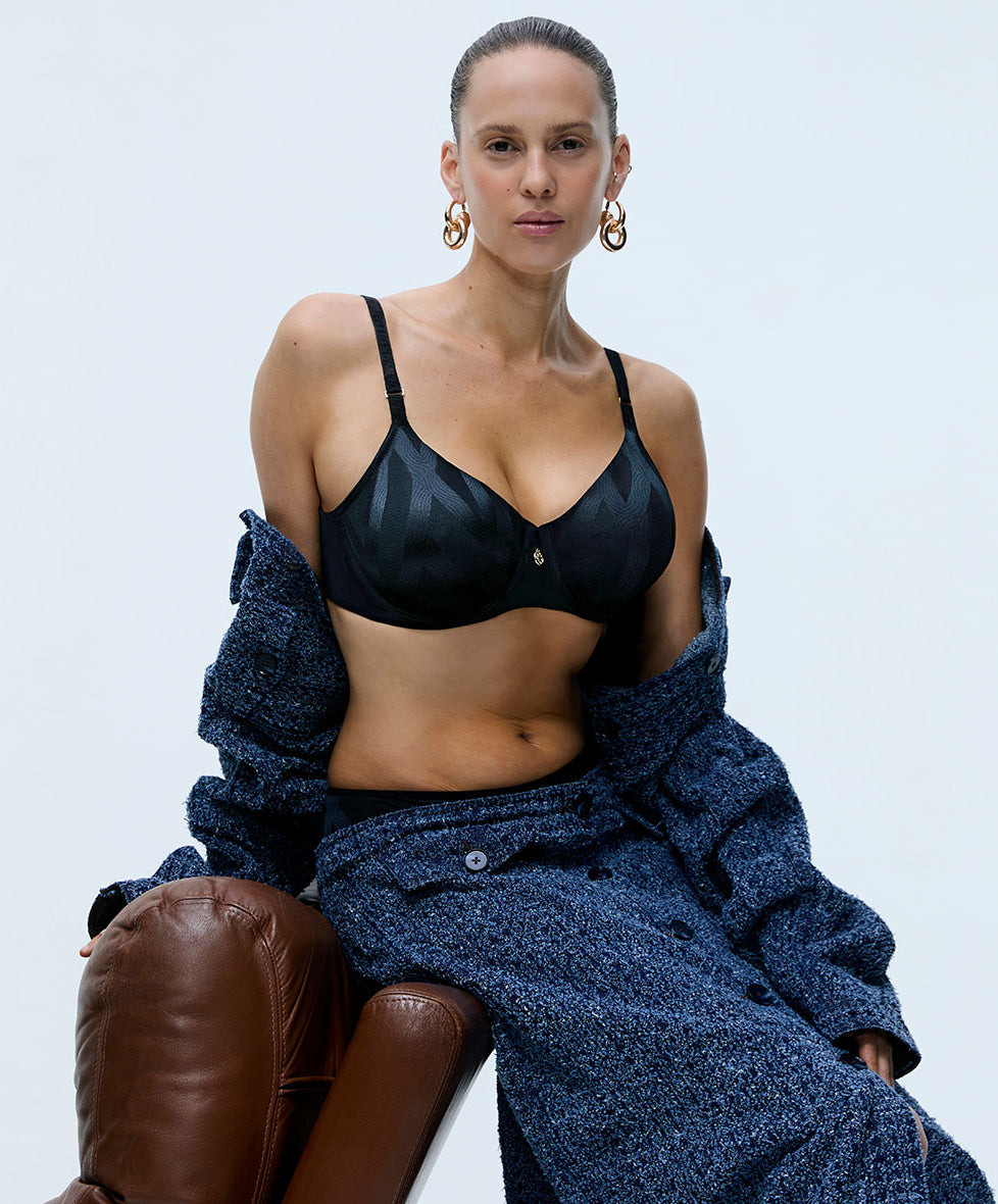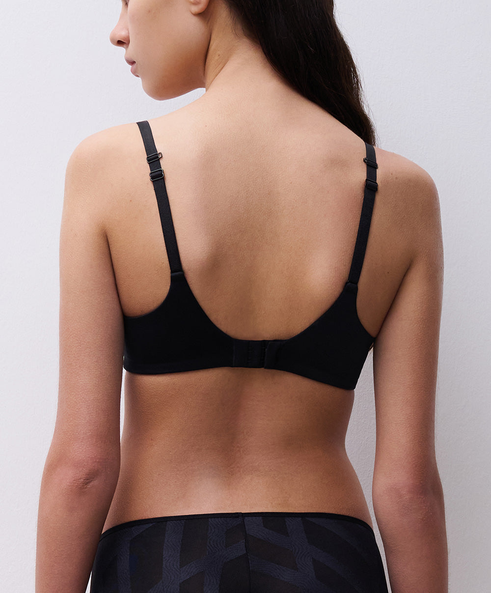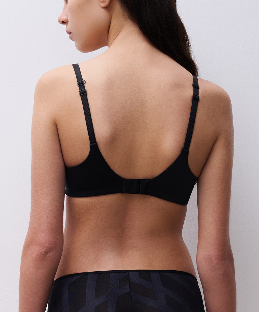 Soutien-gorge coque enveloppant à armatures collection Glaze coloris noir de chez Chantelle.