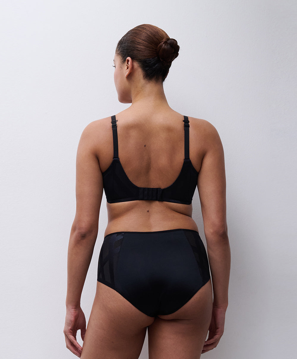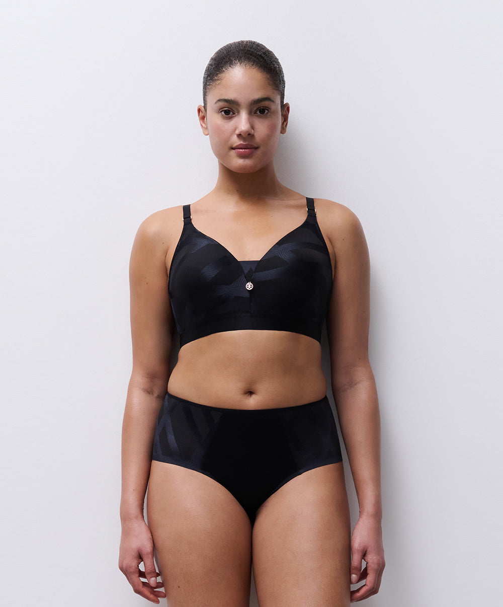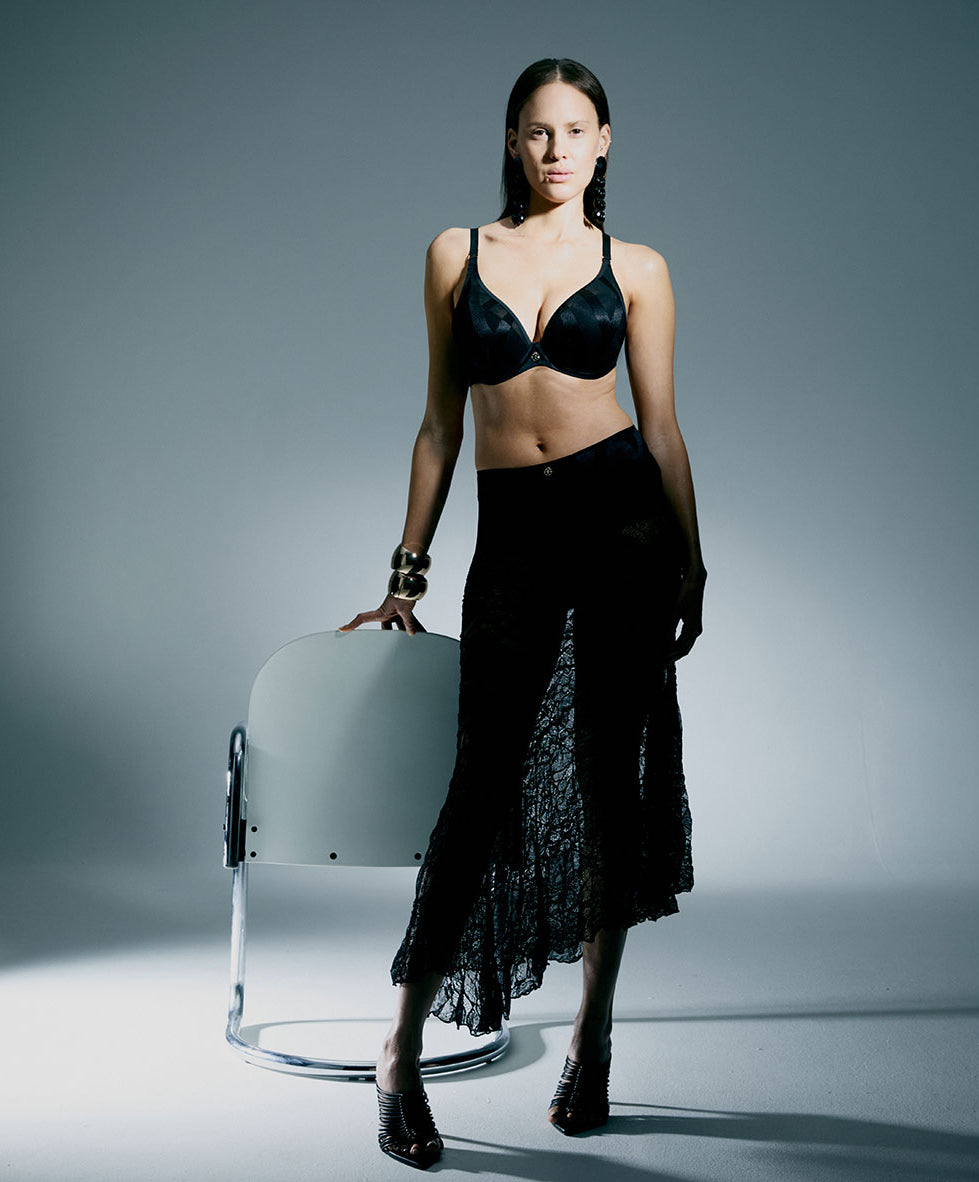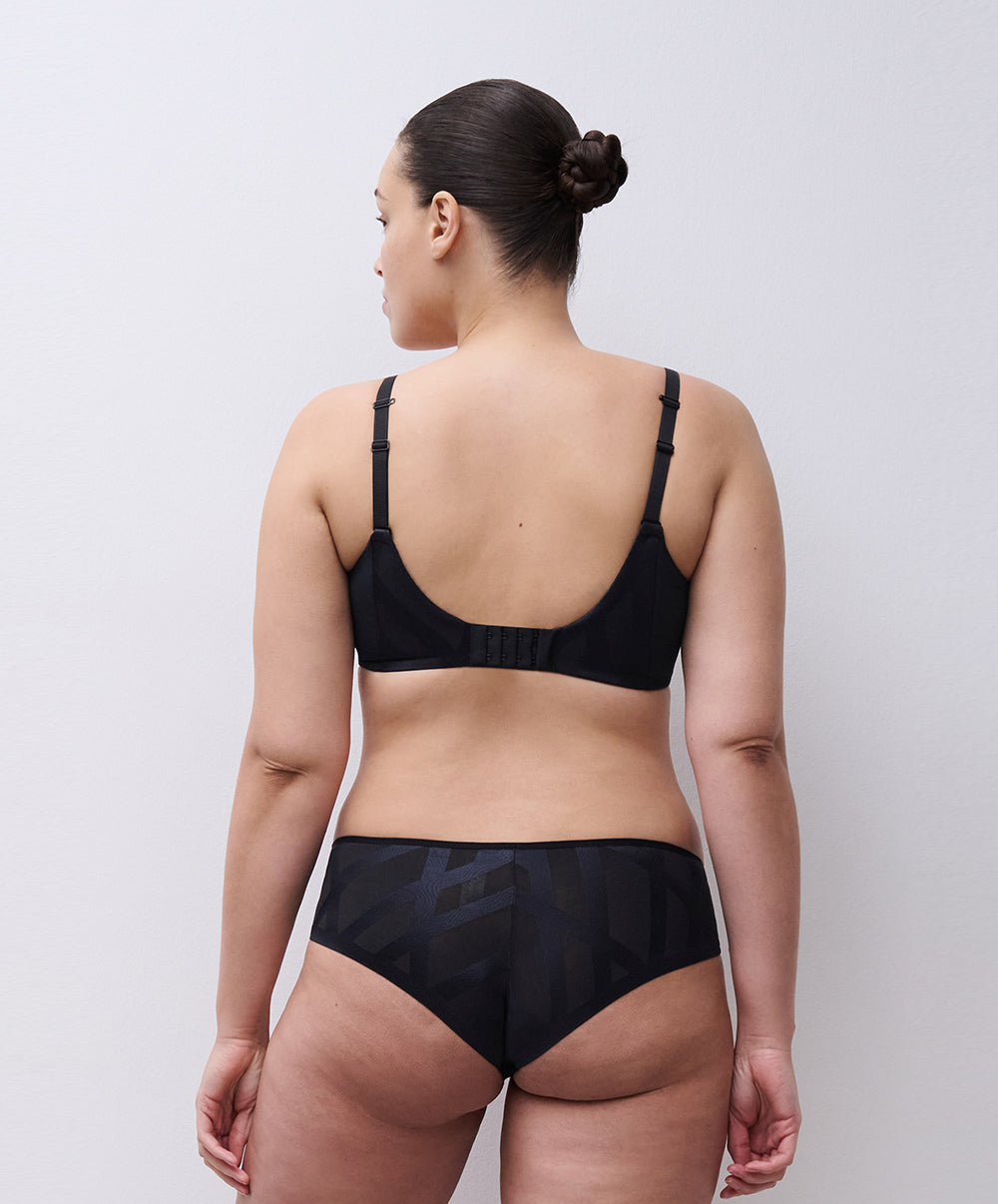 Soutien-gorge coque enveloppant à armatures collection Glaze coloris noir de chez Chantelle.