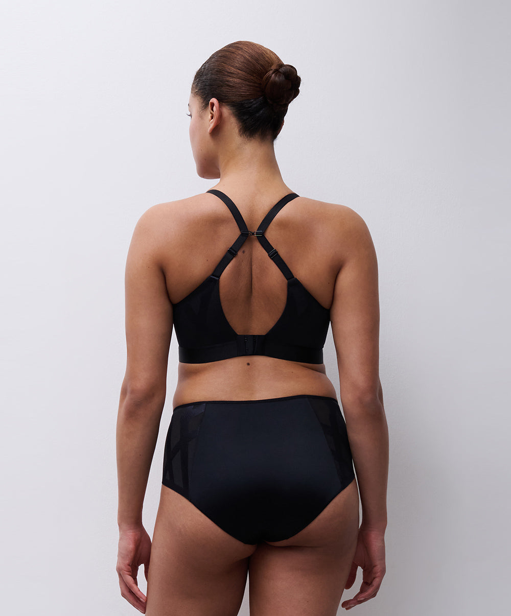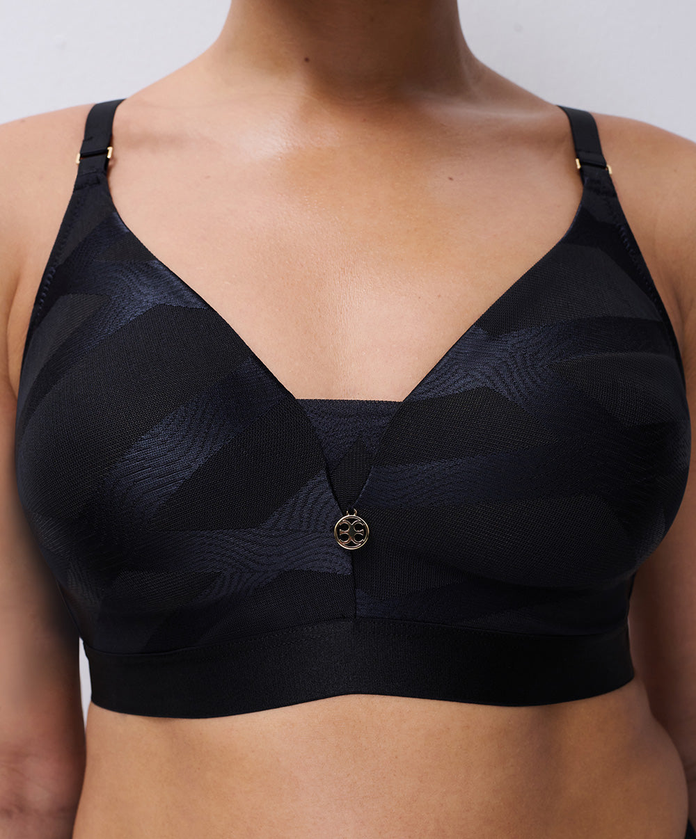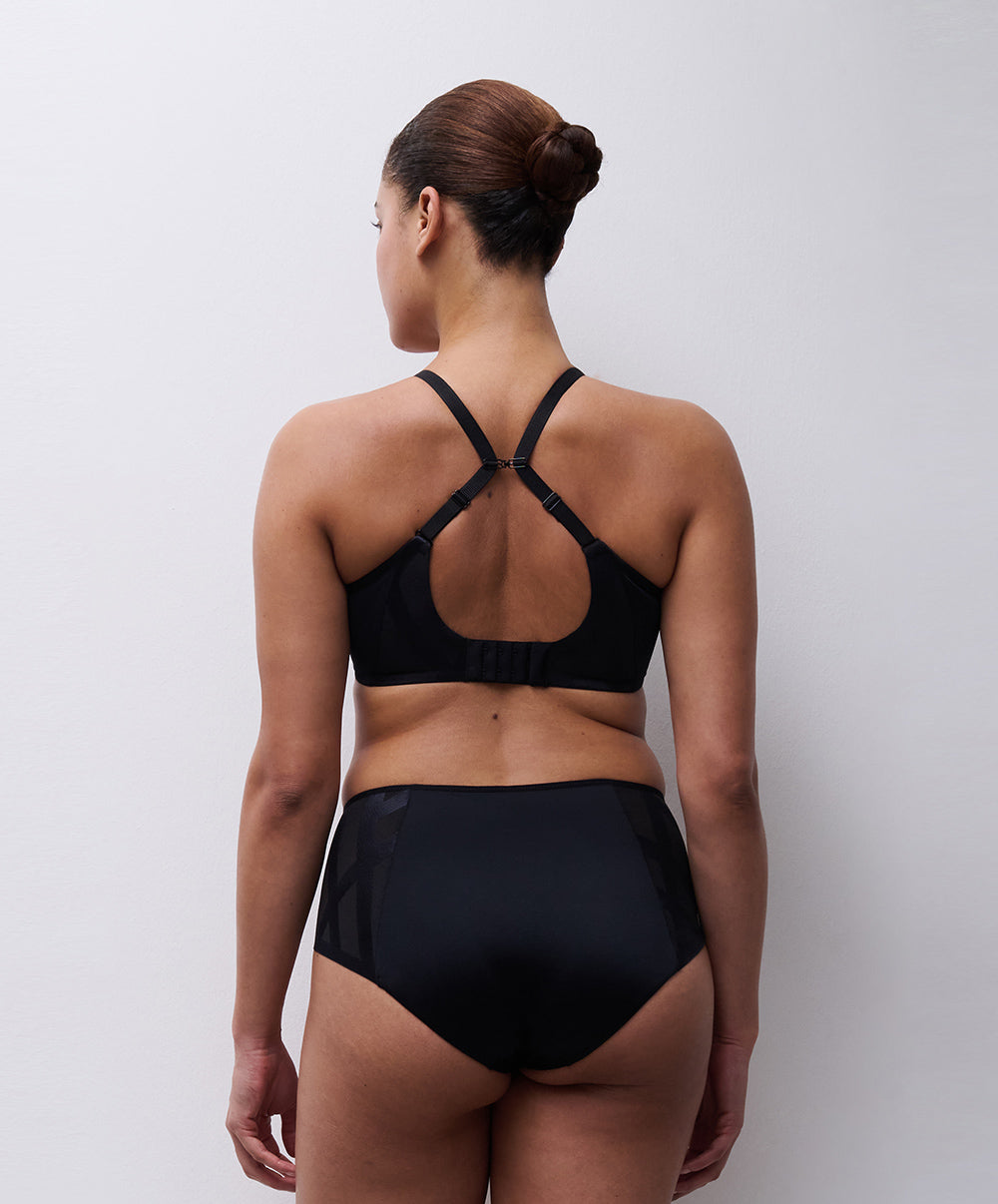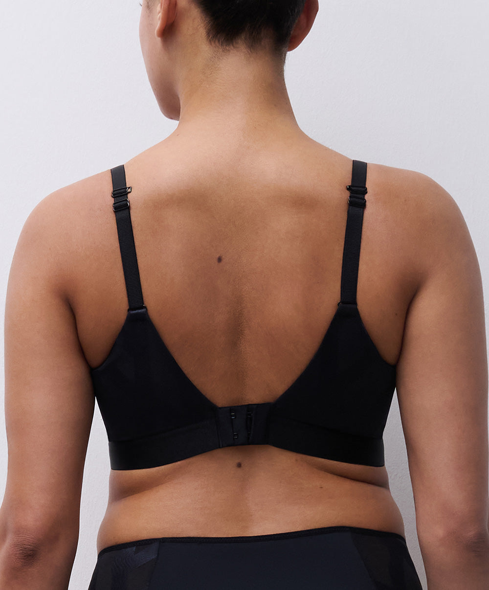 Soutien-gorge coque enveloppant à armatures collection Glaze coloris noir de chez Chantelle.
