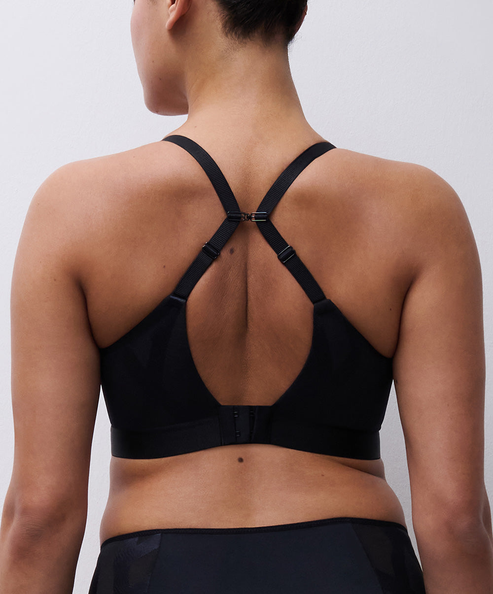 Les bretelles réglables sur toute la longueur s’adaptent parfaitement à la morphologie, tandis que leur largeur évolue selon la taille pour garantir confort et maintien. Une agrafe au dos permet également de transformer les bretelles en position dos nageur, idéale sous certains vêtements.